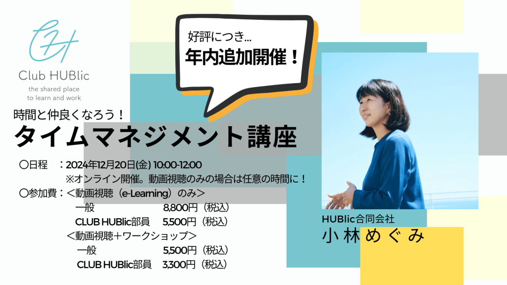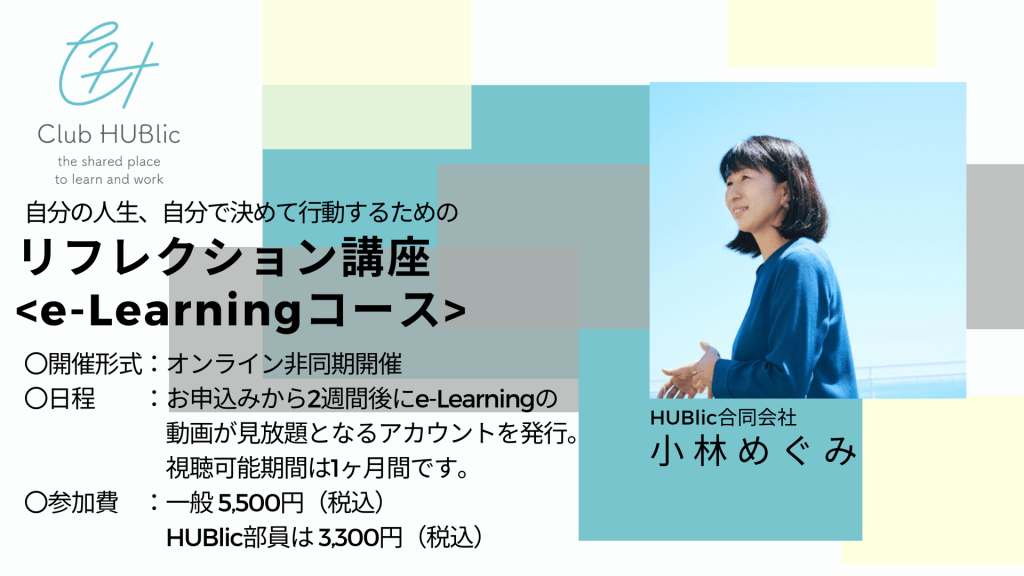 CLUB HUBlicの人気講座、リフレクション講座とタイムマネジメント講座をe-learning形式に収録して、いつでもどこでも動画で視聴いただけるようになりました!