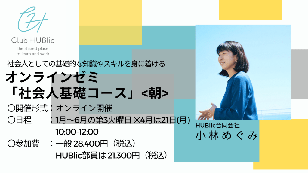 ちなみにCLUB HUBlic部員なら2,000円OFFで受講できますが、最もお手軽なプランの部員の会費も2,000円なので、CLUB HUBlic部員になって部員サービスを受けた上で講座に申し込むのもおすすめですよ!