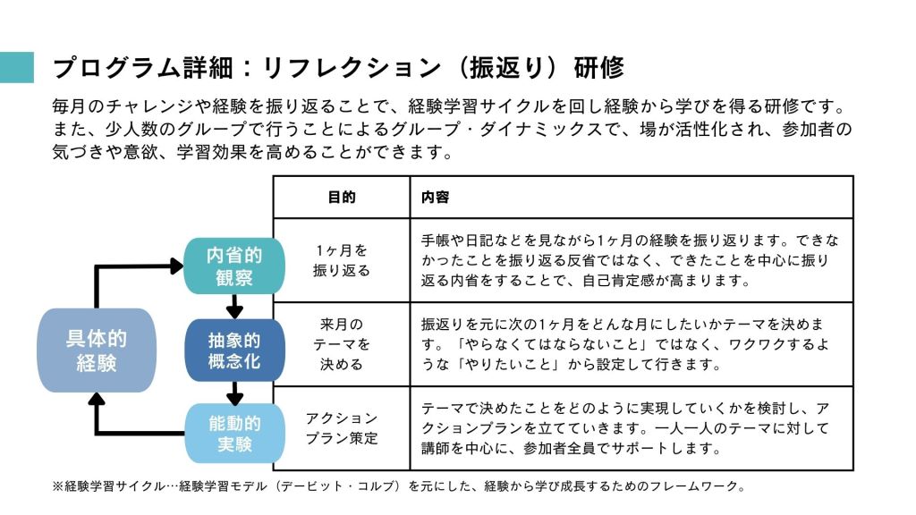 導入イメージ(キャリアプランニング研修+リフレクション研修プログラム)